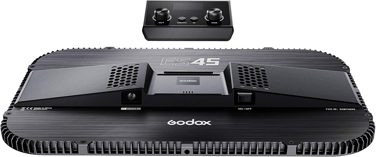 Kit de iluminação LED Godox ES45, ideal para produção de conteúdo, com interface de controle via Bluetooth.