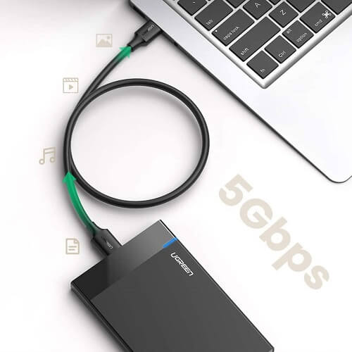 Velocidade de transfer?ncia de 5 Gbps: O cabo micro USB 3.0 UGREEN suporta taxa de transfer?ncia de dados padr?o USB 3.0 de at? 5 Gbps, 10x mais r?pido que USB 2.0.