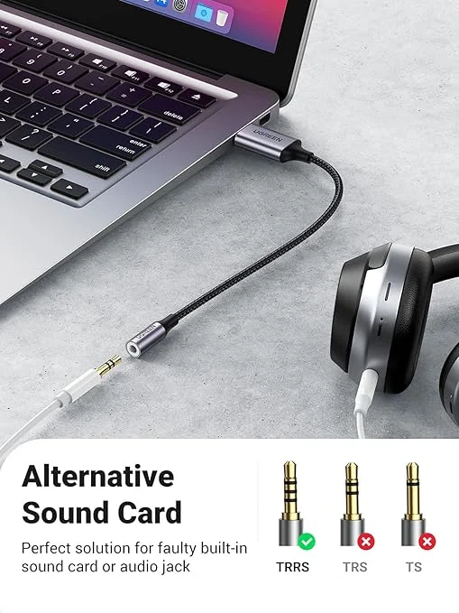 UGREEN 30757 – Adaptador de Áudio USB 2.0 para 3,5 mm (Alumínio, 25 cm)