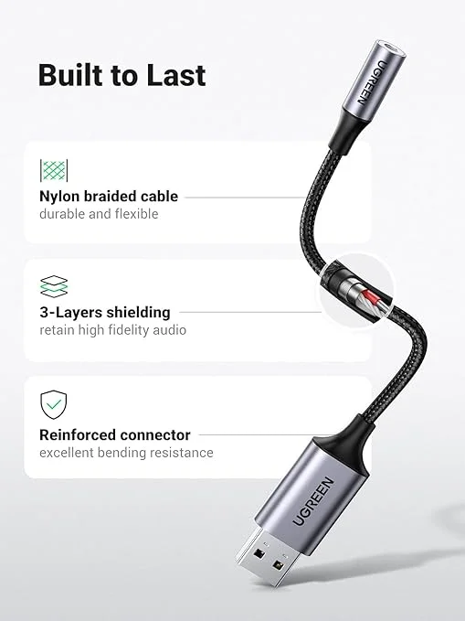 O UGREEN 30757 é uma solução prática para adicionar uma interface de áudio analógica a computadores sem saída de som funcional ou com entrada danificada. Ele conecta via USB 2.0 e disponibiliza uma saída de áudio estéreo/trrs de 3,5 mm que suporta fone de ouvido e microfone. O chip interno DAC oferece qualidade de áudio limpa com resolução de até 24 bit / 96 kHz, e a construção em alumínio reforça a durabilidade enquanto o cabo trançado de 25 cm garante flexibilidade e resistência. É plug-and-play, funcionando automaticamente em sistemas modernos sem necessidade de drivers adicionais.